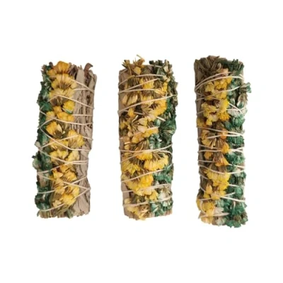 VIE Smudge Stick, White Sage, Green and Yellow Sinuata 4", Pack of 3