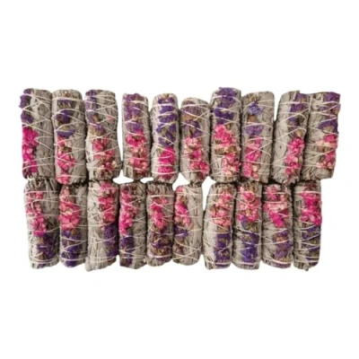 VIE Smudge Stick, White Sage, Purple and Pink Sinuata 4", Pack of 20