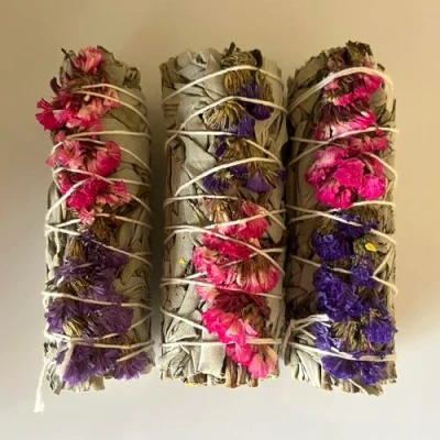 FLORAL ELEGANCE - Features stunning dried flowers that elevate any ritual or setting. UPLIFTING FRAGRANCE - Emits a gentle floral aroma that soothes and refreshes. HANDCRAFTED CHARM - Lovingly tied for an artisanal and effective product. POSITIVE ENERGY - Enhances the atmosphere by inviting uplifting vibrations. GIFT-READY - A beautiful and thoughtful gift for spiritual and mindful living.