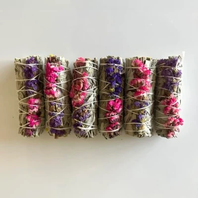 FLORAL ELEGANCE - Features stunning dried flowers that elevate any ritual or setting. UPLIFTING FRAGRANCE - Emits a gentle floral aroma that soothes and refreshes. HANDCRAFTED CHARM - Lovingly tied for an artisanal and effective product. POSITIVE ENERGY - Enhances the atmosphere by inviting uplifting vibrations. GIFT-READY - A beautiful and thoughtful gift for spiritual and mindful living.