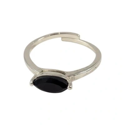 VIE White Bronze Adjustable Ring, Celestial Beam, 5x10mm (Marquise Black Onyx)