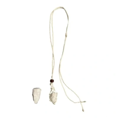 VIE White Macrame Necklace, Agate Tumbled, with Rough Cut