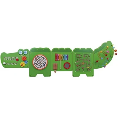 CROCODILE ACTIVITY WALL PANEL -- Colourful Crocadile actiity panel percussive instruments, a mirror, magnetic pen and balls, various mazes and threading activities, rotational pieces and interlocking cogs. BUILD SKILLS -- ideal for individual or collaborative play, the challenges offer children a range of hands-on learning opportunities including problem solving and language development. BUILD SKILLS -- ideal for individual or collaborative play, the challenges offer children a range of hands-on learning opportunities including problem solving and language development. MANIPULATIVE ACTIVITES - Comes in five sections, each with a different set of manipulative activities to encourage hand-eye coordination and fine motor skills INCLUDES -- The set comes in 5 panels with fixing holes and attachment screws for easy fitting to a wall. MEASUREMENTS -- L 45 x W 37 H 29cm. INFO -- Made from MDF and recommended for indoor use only. SUITABLE -- Suitable from 18 months., Manufacturer: Viga