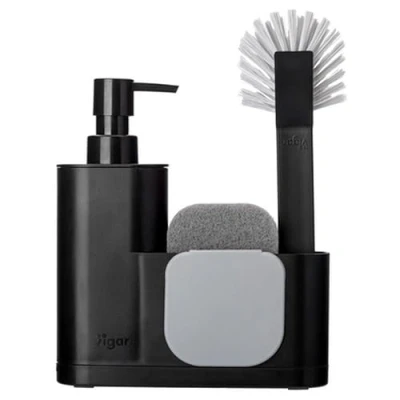 Sink Set – Brush Set with Sponge, Spatula and Soap Dispenser 350 ml. Sponge with dual-use function; Kitchen spatula for scraping surfaces without scratching tableware. Removable tray with small studs for stability. USEFUL AND PRACTICAL: Its simple design seeks to facilitate the grip and use of this brush with non-slip. Its 350 ml soap container ensures the right dose for every wash without waste and without the need for continuous refilling. DETAILS AND MATERIALS: The dimensions of the sink with dispenser are: 18.5 x 5 x 26 cm. Acrylonitrile butadiene styrene (ABS), thermoplastic rubber (TPR) and nylon have been used for its manufacture. Made of durable materials and sturdy bristles. FIRST QUALITY FOR YOUR HOME: At present, we pursue excellence and take utmost care of details so that you only receive superior quality products. With tomorrow in mind, we employ more sustainable and ecologically responsible materials. CASA VIGAR: We are a company with a family heart, born on the coast of Alicante and specialized in the creation and design of products for the home. We have more than 60 years of experience and are present in more than 30 countries around the world.