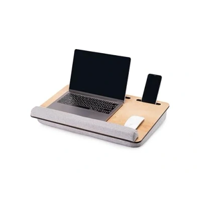 Vigo Wood Laptop Tray for Bed, Lap Desk Laptop, Stand with Cushion, Portable Home Office Fits up to 17.3'' Tablet and Phone Holder (Oak & Gray)