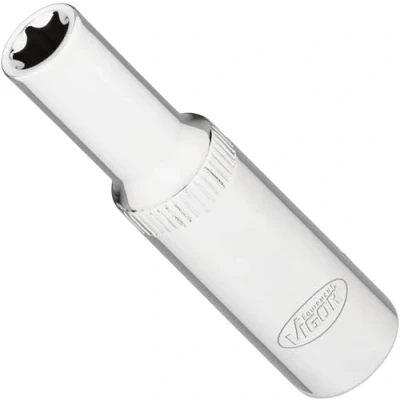 Durable: robust material for long durability, suitable for heavy duty use, 3/8 inch (10 mm) square drive VERSATILE: 63mm long socket suitable for deep screw connections and hard-to-reach areas Precise: precisely fitting E-profile with spanner width E10, high power transmission for secure screw connection Quality: ViGOR tool guarantees good performance and safety at the same time; in addition to maximum power, we offer you tools, which have been extensively tested Box contents: 1 x ViGOR T-socket spanner insert, long, 3/8 inch V7014-10