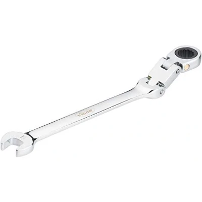 Vigor V6752 9 Ratchet Ring Spanner (Double Joint with Fine Toothed Mechanism on The Side) Silver