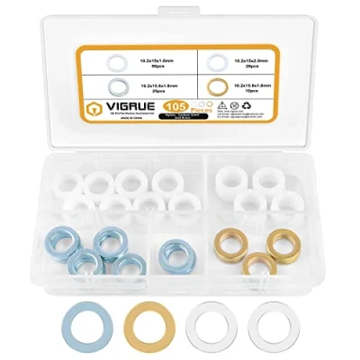 VIGRUE Pack of 105 Fitting Rings Assortment Set, Washers Door Diameter 10.20 x 15 1 mm/Diameter 2 15.8 1.8 mm, Solid Brass, Galvanised, Plastic