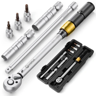 VIGRUE Torque Wrench Bicycle 3/8 Inch, 10 60 Nm ±3% Error Accuracy with Extension Rod, Universal Joint, Spark Plug Sleeve, Bits for Bicycle, Motorcycle and Car