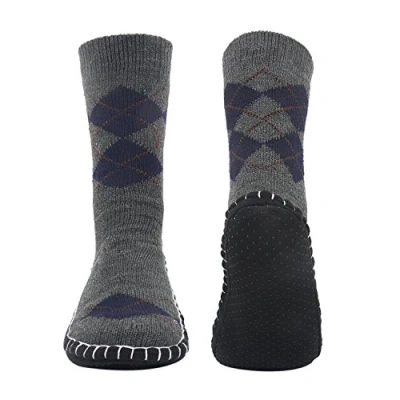 Vihir Men Knitted Non Skid Home Slipper Socks (Argyle Grey)