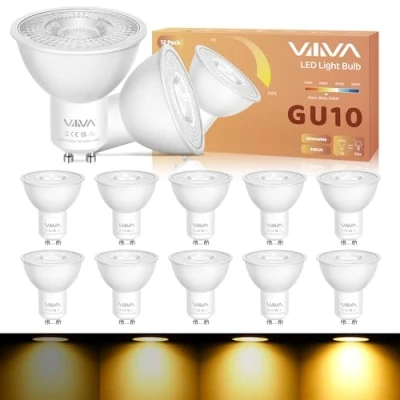 [Dimmable Bulbs]: GU10 led bulbs can smooth dimming from 0%-100%, Only compatible with trailing-edge dimmer switches (led dimmer switch). [Energy Saving]: 7W GU10 LED bulbs are as bright as 50W Halogen bulbs, have low power consumption, and save over 90% on electricity bills. [Soft Light]: GU10 LED bulbs with 38° narrow beam angle, give off 3000K, 510lm comfortable warm white light for a cozy and relaxed atmosphere. [Eye Protection]: GU10 LED lamps with high color rendering (CRI > 80), provide vivid color and warm white light effect, for focal lighting. [Reliable Quality]: GU10 LED light bulbs have no buzzing or humming, no flicker, and 25000 hours of work life. Don't need to change the bulbs frequently., Manufacturer: VIIIVA
