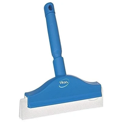 This double blade bench squeegee provides effective removal of both water and food debris from food preparation surfaces Durable, one-piece molded head; Polypropylene head easy to sanitize; Double splash guard for push or pull applications; Molded reverse edge scraper; Effective in removal of water and food debris from food preparation surfaces International products have separate terms, are sold from abroad and may differ from local products, including fit, age ratings, and language of product, labeling or instructions.