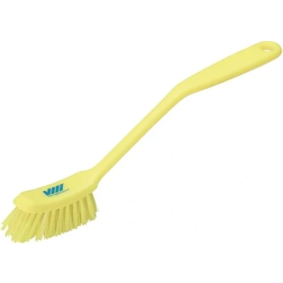 Vikan Fine Dish Brush Heavy Duty, Narrow, Slip Resistant Cleaning Brush, Polypropylene, Polyester Bristle, 11 Inch, Yellow, (42876)