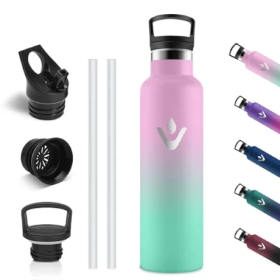 Stainless steel drinking bottle: Vikastar thermos flask is made of high-quality stainless steel and BPA-free lid, which is non-toxic and BPA-free, odourless and healthy for your daily water drinking. If you are looking for a bottle that is durable and safe, it is the right choice Double-wall insulation technology: This water bottle comes with the highest quality 18/8 stainless steel available, which is fully resistant to oxidation and corrosion. Double-walled stainless steel vacuum insulation, keeps water hot for up to 12 hours and cold for up to 24 hours without sweating or condensing. You can enjoy the most satisfactory temperature, whether in summer or winter. carbonated drinking bottle. 2 interchangeable lids: (1) straw lid: you can easily drink water/drinks without removing the lid, the 50 mm opening is ready for you to put ice cubes in the bottle in summer, suitable for sports and outdoors. (2) Handle lid: This cap comes with a carrying ring and a removable filter. It can block the herbal tea, fruits and ice cubes or something like you drink. Drinking bottle with straw. Shatterproof and leak-proof: water bottle with 5 cm wide opening, easy to clean, leak-proof high-performance thread closure so that it fits tightly, high-quality silicone ring ensures that nothing leaks, whether tipped over or shaken. Durable bottle body so you don't have to worry about it breaking when dropped Perfect customer service: If you have any problems using our product, please contact us. We have a professional customer service team that will answer your email within 24 hours. Besides, you can enjoy one year free replacement and warranty service