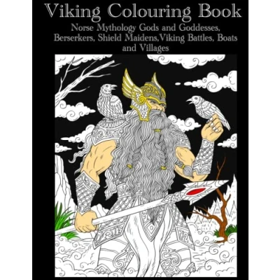 Viking Coloring Book: Norse Mythology, Gods and Goddess, Berserkers, Battles, Shield Maidens, Boats Villages (Adult Pages)