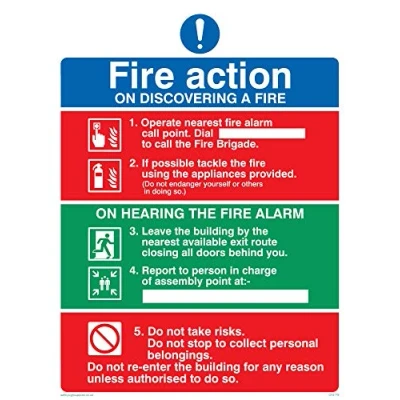Fire Action Sign With Exclamation And Prohibited Symbols Complies with EN 7010 Safety Sign Requirements Vinyl Part of a range of over 35,000 matching signs, perfect for large sites and multiple locations where consistency is important. Viking Signs brand Safety Signs are manufactured in the UK and used everywhere from Giraffe Restaurants to the Excel Centre in London.
