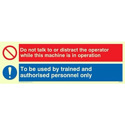 Viking Signs CM202 L15 PV "Do Not Talk Or Distract Machine Operator, Trained Personnel Only" Sign, Photoluminescent Vinyl, Sticker, 150 mm H x 50 W