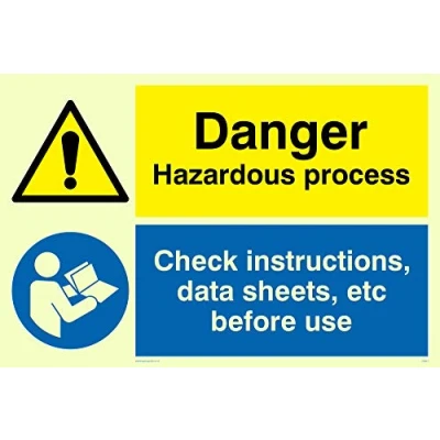 Viking Signs CN651 A4L PV "Danger Hazardous Process, Check Instructions, Sata Sheets, etc Before Use" Sign, Photoluminescent Vinyl Sticker, 300 mm H x 200 W