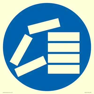 M904 : Stack correctly This sign is made from vinyl photoluminescent sticker S30 square Sign Text: