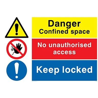 Viking Signs CV5376 A4L 1M "Danger Confined Space, No Unauthorised Access, Keep Locked" Sign, 1 mm Plastic Semi Rigid, 300 H x 200 W