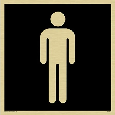 Male Toilet Symbol In Negative Black Standardised finish for a whole range of door and room signs. Gold Vinyl Part of a range of over 35,000 matching signs, perfect for large sites and multiple locations where consistency is important. Viking Signs brand Safety Signs are manufactured in the UK and used everywhere from Giraffe Restaurants to the Excel Centre in London.
