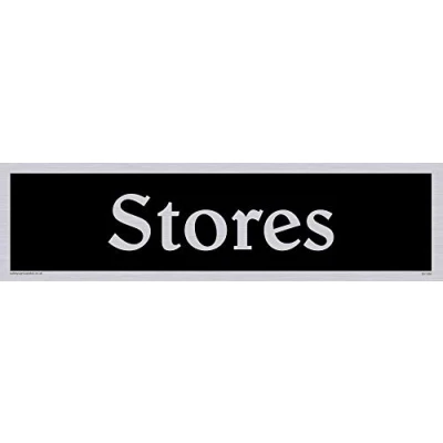 Stores - Door Sign With Belwe Medium Negative Black Text Standardised finish for a whole range of door and room signs. Silver Vinyl Part of a range of over 35,000 matching signs, perfect for large sites and multiple locations where consistency is important. Viking Signs brand Safety Signs are manufactured in the UK and used everywhere from Giraffe Restaurants to the Excel Centre in London.