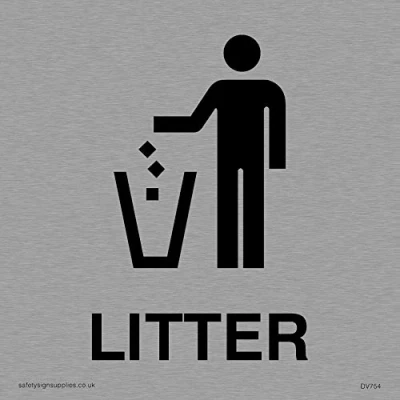 Viking Signs DV754 S85 MS "Litter" Sign, Positive Black Text, 1 mm Stainless Steel, 85 H x W