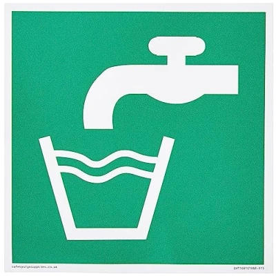 E015 : Drinking water This sign is made from vinyl high tack A stickier sticker. Uses a stronger adhesive to make it more suitable for plastic surfaces like Wheelie Bins or where the sticker might get rubbed. S15 square Sign Text: