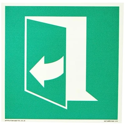 Viking Signs E058 safe condition door opens pulling right hand side Sign 150x150mm S15, Green/White
