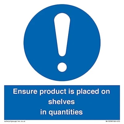 Viking Signs Ensure Product Is Placed on Shelves in Quantities Sign 150x150mm S15,Blue/White