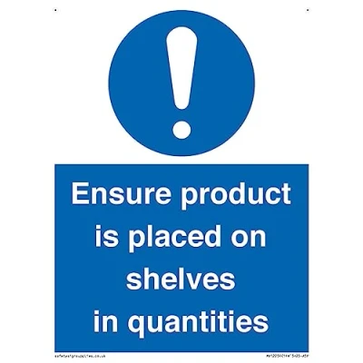 Viking Signs Ensure Product Is Placed on Shelves in Quantities Sign 150x200mm A5P, Blue/White