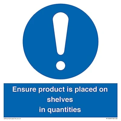 Viking Signs Ensure Product Is Placed on Shelves in Quantities Sign 200x200mm S20,Blue/White