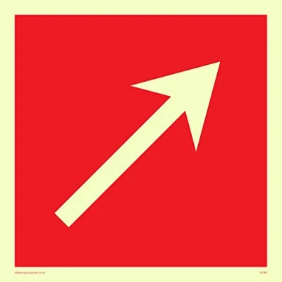 Diagonal Fire Equipment Arrow Complies with EN 7010 Safety Sign Requirements Photo luminescent vinyl sticker Part of a range of over 35,000 matching signs, perfect for large sites and multiple locations where consistency is important. Viking Signs brand Safety Signs are manufactured in the UK and used everywhere from Giraffe Restaurants to the Excel Centre in London.