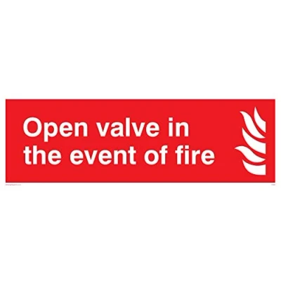 Viking Signs FV368 L15 V "Open Valve In The Event Of Fire" Sign, Vinyl/Sticker, 150 mm H x 50 W