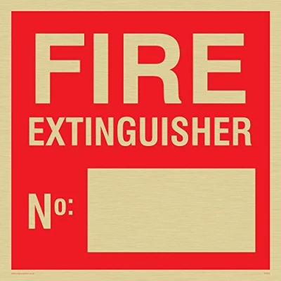 Viking Signs FV370 S20 G "Fire Extinguisher No:" Sign, Rigid Gold, Plastic, 200 mm H x W