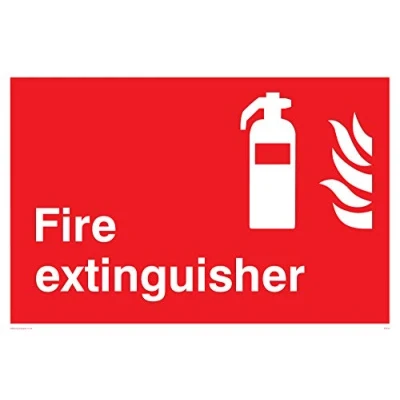 Fire extinguisher & flames symbol Complies with EN 7010 Safety Sign Requirements Sticker with a white background colour, comes with a self-adhesive backing. Suitable for fixing to clean, flat, solid surfaces. Vinyl Viking Signs brand Safety Signs are manufactured in the UK and used everywhere from Giraffe Restaurants to the Excel Centre in London.