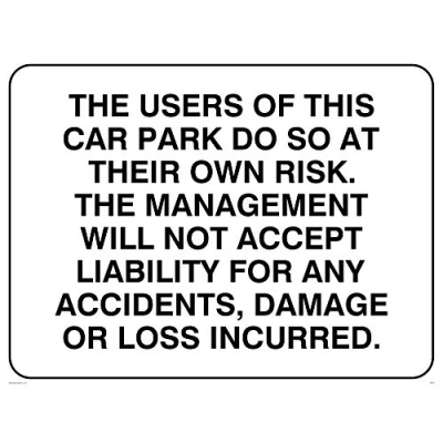 Viking Signs IR578 A3L 3M Carpark Liability Disclaimer Sign, 3 mm Plastic Rigid, 300 H x 400 W