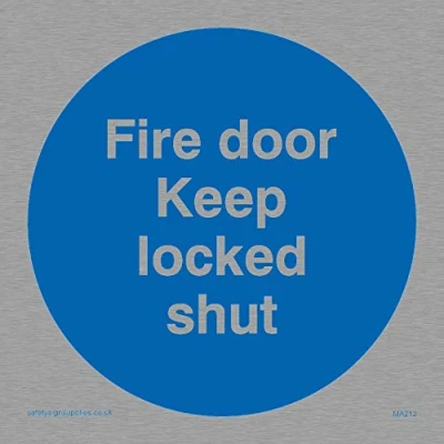 Viking Signs MA212 S85 MS "Fire Door Keep Locked Shut" Sign, Marine Grade Stainless Steel, 85 mm x