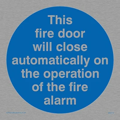 Viking Signs MA213 S10 MS "This Fire Door Will Close Automatically On The Operation Of Alarm" Sign, Marine Grade Stainless Steel, 100 mm x