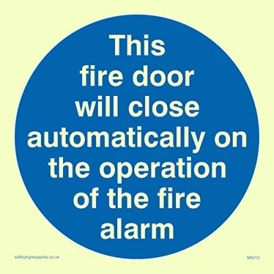 Viking Signs MA213 S10 PV "This Fire Door Will Close Automatically On The Operation Of Alarm" Sign, Photo luminescent Sticker, 100 mm x