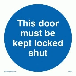 Viking Signs MA215 S10 V"This Door Must Be Kept Locked Shut" Sign, Vinyl, 100 mm x mm,Blue
