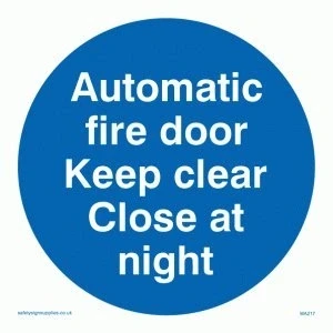 Viking Signs MA217 S15 V "Automatic Fire Door Keep Clear Close At Night" Sign, Vinyl, 150 mm x