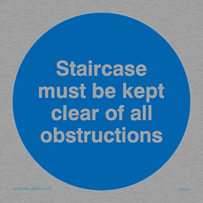 Viking Signs MA227 S85 MS "Staircase Must Be Kept Clear Of All Obstructions" Sign, Marine Grade Stainless Steel, 85 mm H x W