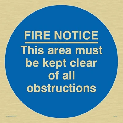 Viking Signs MA228 S20 G "Fire Notice This Area Must Be Kept Clear Of All Obstructions" Sign, Rigid Gold Plastic, 200 mm H x W