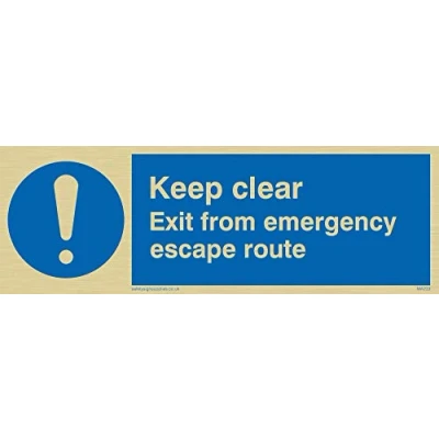 Viking Signs MA233 L15 G "Keep Clear Exit From Emergency Escape Route" Sign, Rigid Gold Plastic, 50 mm H x 150 W
