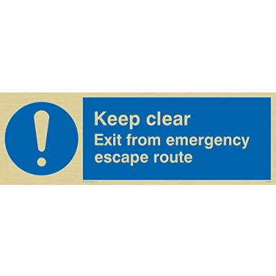 Viking Signs MA233 L31 G "Keep Clear Exit From Emergency Escape Route" Sign, Rigid Gold Plastic, 100 mm H x 300 W