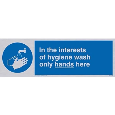 Viking Signs MH209 L15 S "In The Interests Of Hygiene Wash Only Hands Here" Sign, Rigid Silver Plastic, 50 mm x 150
