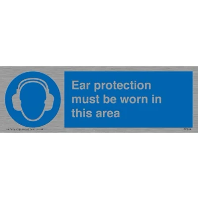 ear protection symbol Standardised finish for a whole range of door, room and information signs. Premium finish, tough and durable to suit a modern, stylish environment. Marine Grade Stainless Steel Viking Signs brand Safety Signs are manufactured in the UK and used everywhere from Giraffe Restaurants to the Excel Centre in London.