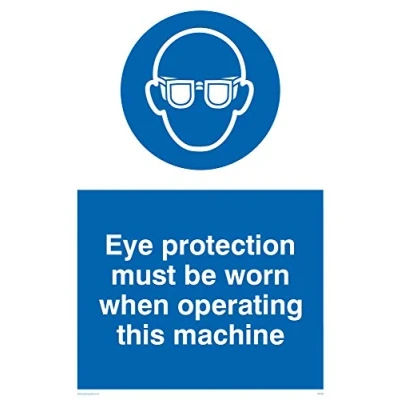 eye protection symbol Standardised finish for a whole range of door, room and information signs. Sticker with a white background colour, comes with a self-adhesive backing. Suitable for fixing to clean, flat, solid surfaces. Vinyl Viking Signs brand Safety Signs are manufactured in the UK and used everywhere from Giraffe Restaurants to the Excel Centre in London.
