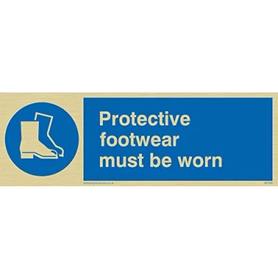 Viking Signs MP285 L15 G "Protective Footwear Must Be Worn" Sign, Rigid Gold Plastic, 50 mm H x 150 W